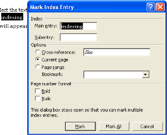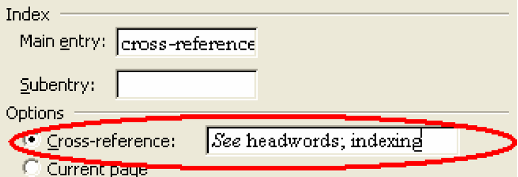 The index entries are in curly brackets, with the code “XE” at the beginning. A typical entry might look like this: {XE “indexing:in Word”}. Here, “indexing” is the main entry, “in Word” is a subentry. You can edit this text to change the index term.