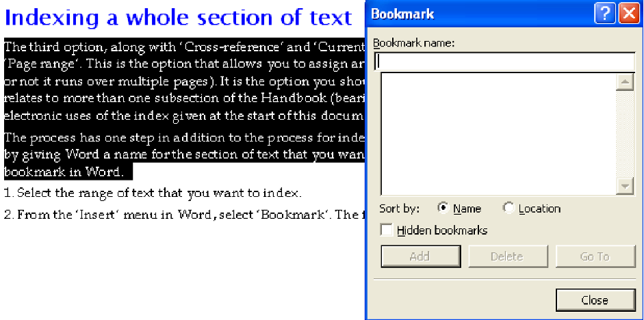 - The words that make up each entry must correspond exactly with what is in the text in terms of capitalisation, hyphenation, italicisation, etc.