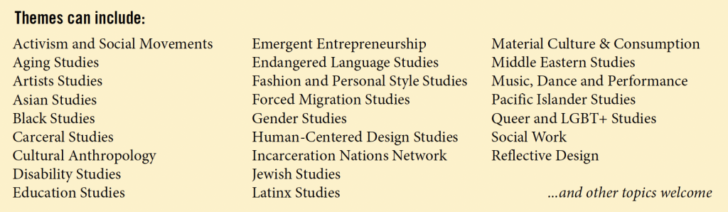 Submissions: We are looking for presentations, infographics, and panels that reflect the conference theme and expand our understanding of lived experience in interdisciplinary fields. We are open to all methods and styles of communication that expand and amplify the dialogue around intersectionality and what it means to be human in our current zeitgeist.